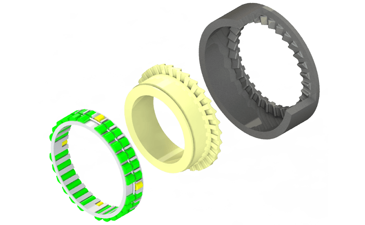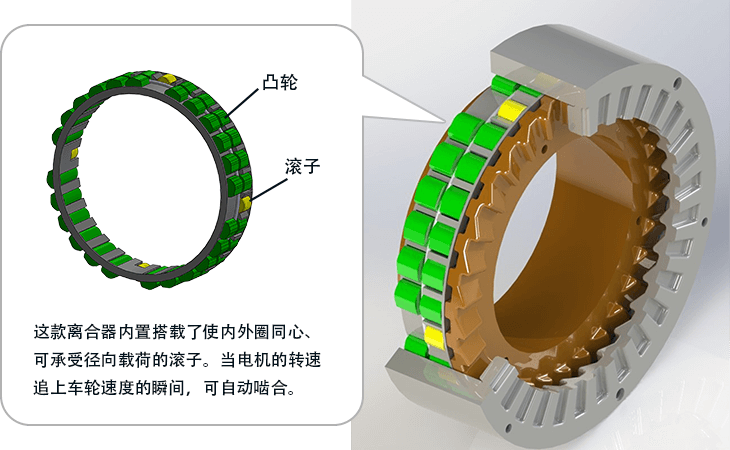 通过滚子和凸轮同轴配置确保同心度。通过空转时减少摩擦扭矩提高静音性。